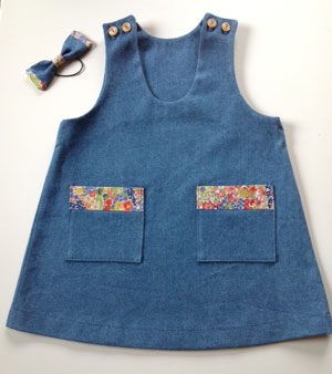 おまけで頂いたハギレをデニムのジャンパースカートのポケットにあしらいました。ありがとうございました。