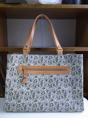 リバティのラミネートは薄手なので、裏に芯地(圧縮ウレタン)を貼りました。ポケットがたくさんあって使い易いバッグです。