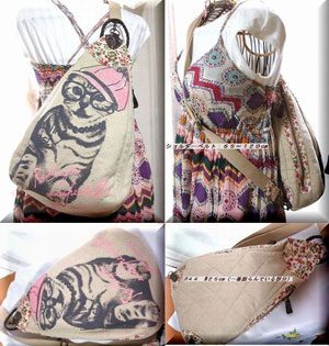 バック、小物を作った後に微妙に残った小布をアクセントに「ナンシー・アン」を使用しました。薄ベージュのTシャツとの相性も絶妙です。