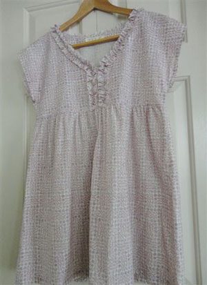 メルシーさん別注の綿麻SleepingRoseパープルでフリルたっぷりのチュニックを作りました。パターンは、<happy hpmemade vol.3ワンピースパターンからチュニック、ブラウスも デザイン笹原のりこ 文化出版局編>のF-2を参考に作りました。色はパープルとありますが、ピンクの印象で、本当に甘い感じに仕上がりました。生地は滑らかで、真夏でもさらっと涼しく着ていられます。お気に入りの1着になりました。
