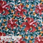 1906年頃にテキスタイル・デザイナー兼壁紙デザイナーのシドニー・モーソンが創作したデザインがベースになった「モーソン・メルバリー」。リバティは20世紀初頭に、蔓、果物、花の咲く木などが頻繁に描かれた彼のプリント生地を販売していました。このバージョンでは、伝統的なアーツ・アンド・クラフツの花柄をトロピカル風にアレンジし、甘美なブラックベリーが太陽の光を浴びながら、様式化された見事なユリの花に囲まれて輝いています。