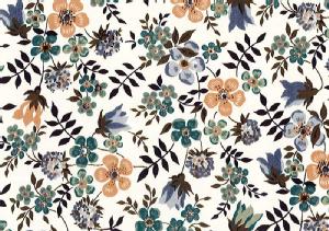 1994年にリバティ社が購入したデザインで、1997年からクラシックコレクションに加入しました。スペースのある構図と明るく軽快なこの柄は、アイボリー系の淡色グランドの配色のみならず、ネイビーなどの濃色のグランドの配色まで数多くの配色のヴァリエーションがあり、デザイン発表以来、リバティプリントを代表する1柄として、不動の人気を保っています。