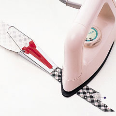 好みの柄のバイアステープが簡単につくれます。袖ぐり・衿ぐりのパイピング始末やベルト通しなど、共布で素早く同じ幅のテープ作りができます。