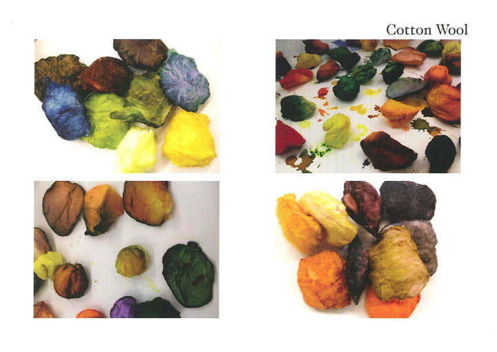 衣類乾燥機に集まった色とりどりの糸くずをヒントに、コットン・ボールを染色してみました。それらを基にして最終的にできあがったパレットはこれらの豊かな綿のもつ色合いからなるマルチ・カラーのリバティらしいものになりました。