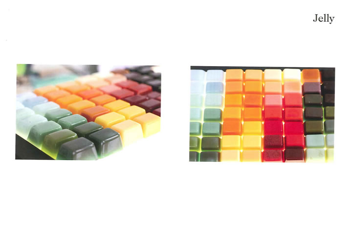 マシュー・バーニー(Matthew Barney)のシネマトグラフィーをヒントにしたもので、原始的な感覚の力強さや彼ならではの世俗的な色彩を捉えることに努めています。このパレットは光がフィルムを通る様を再現する為に、ゼラチンで固めた様々な色のブロックをライト・ボックスの上に飾り、生まれました。最終的にできあがったのは、躍動感のある強烈なラスベリーやオレンジと透明感のある深いグリーンやセピアとの珍しい組み合わせです。
