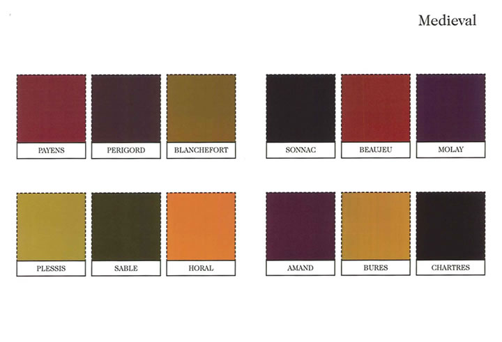ヴィクトリア・アンド・アルバート美術館に収められている中世のローブからとった色彩で、深みのあるブラウン、マゼンタ、チェストナッツやゴールドを中心とした中間色の組み合わせです。