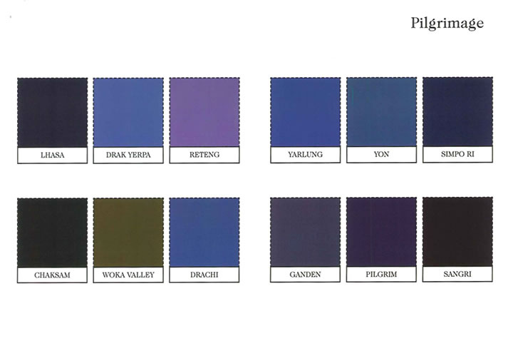 スピリチュアルな旅、厳しい環境で巡礼を続ける中で色あせていく巡礼者たちが身にまとう布をヒントにしています。深みのあるチャコール、プラム、オリーブといった色合いが、巡礼者たちを終着点で待ち受ける目を見張るようなブルーとブレンドします。