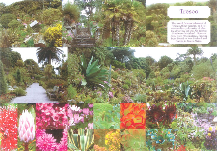 この島の所有者でありアーティストであるルーシー・ドリエン・スミス(Lucy Dorrien Smith)とヘッド・ガーデナーであるマイク・ネルハム(Mike Nelham)の暖かい心遣い、トレスコ島のまさに圧巻の風景と植物から生まれた端々しいプリントのシリーズは、標本から切り取られた植物、静物画や写真をもとに描かれ、色付けされました。