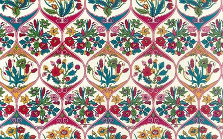 1900年代初期のリバティのプリント用の版を集めた本からとった柄で、ビュレル・コレクションの中のオリエンタル・カーペットと似ていたことから選びました。