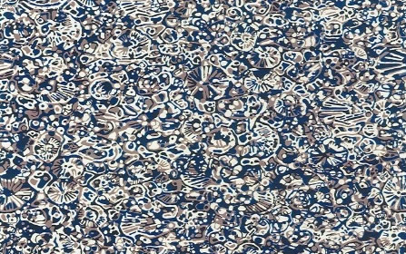 1950年代に遡るリバティ・アーカイヴに収められた柄に、マウント・スチュアートの中央ホールにある階段の大理石で見つけた化石や、カウンティ・ダラムにあるフロスターリーの町の化石の柄を織り込みました。これらは3億4000万年以上も前の魚や貝やエビの化石とされています。ラテン語の化石という言葉は文字通り「掘り起こした」という意味です。