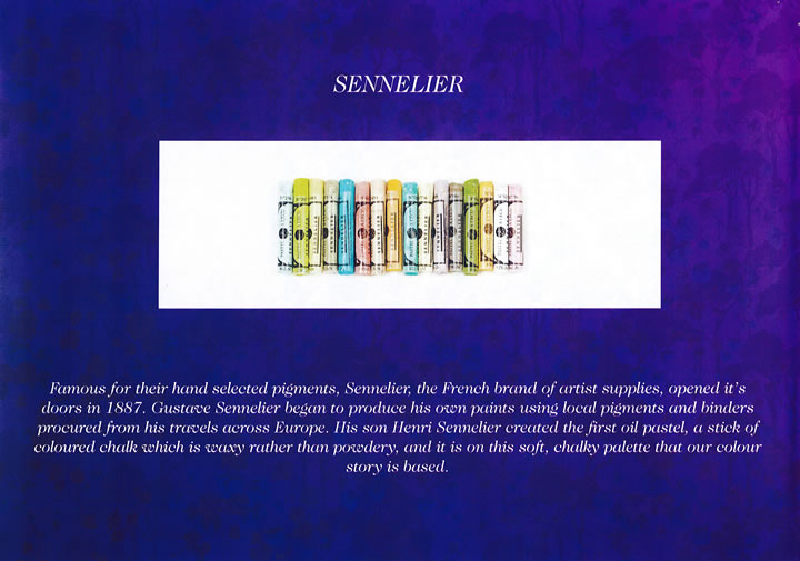 顔料の一つ一つを入念に選ぶことで有名なフランスの画材専門ブランドのセヌリエは、1887年に創業しました。ギュスタブ・セヌリエはヨーロッパを旅する中で見つけたその土地固有の顔料を使って、独自の絵の具を作り始めました。その後、息子のアンリ・セヌリエにより、粉というよりワックスに近いスティック状のカラー・チョーク、オイル・パステルが初めて誕生しました。