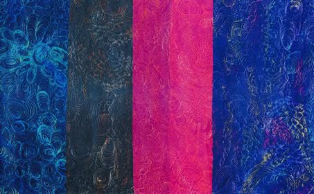 シュトックマーのクレヨンを使ってリバティ内で手描きされ、リピートをつけた抽象的な花柄です。この柄は家具売場で表現しています。