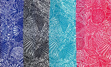 リバティ百貨店にあるブリティッシュ・モダン・プリントの売り場とそこで売られているスクリーンやリノ版画のスタイルを表しており、植物自体のもつ美しく魅力的な形状を新鮮かつモダンな手法で語りかけています。一つ一つの要素が互いに作用し合い、まるでパズルのような効果を作り出しています。