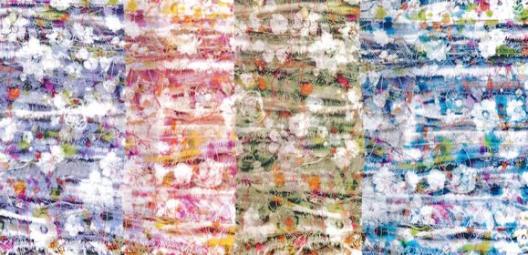 デニムとカジュアルウェア売場を表す「ホリー」は、窮極のカラー・デニムやディストレス・デニムをヒントに制作されました。何本ものジーンズを細かく引き裂き、マルチ・カラーのインクを垂らし撮影、それをコンピューター処理しました。