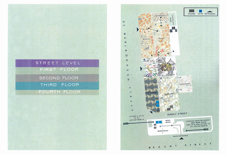 本のイラストを参考に1972年に制作されたデザインをもとにした柄です。退廃的な劇場型のショッピング体験を表現した柄で、中央のアトリウムを象徴しています。1920年代ならではの素晴らしい感覚を備えたこの柄は、今日のリバティのアトリウムの造りを連想させます。