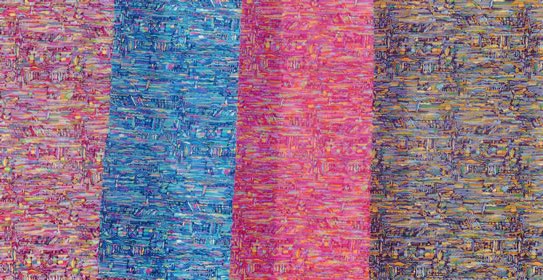 リバティのアーカイブに収められている出典不詳のテキスタイルをもとに制作されました。鉛筆の削りかすの形をしたストライプ柄の「ジョナサン」は文具売場を象徴しています。