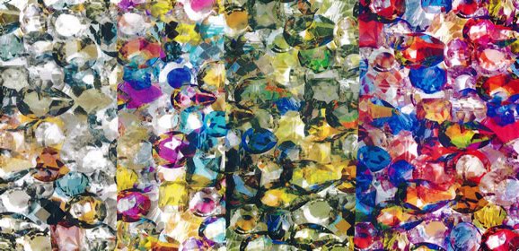 一面を派手な宝石で覆われたこの柄は、写真を使って制作されたジュエリー売場を代表する柄です。