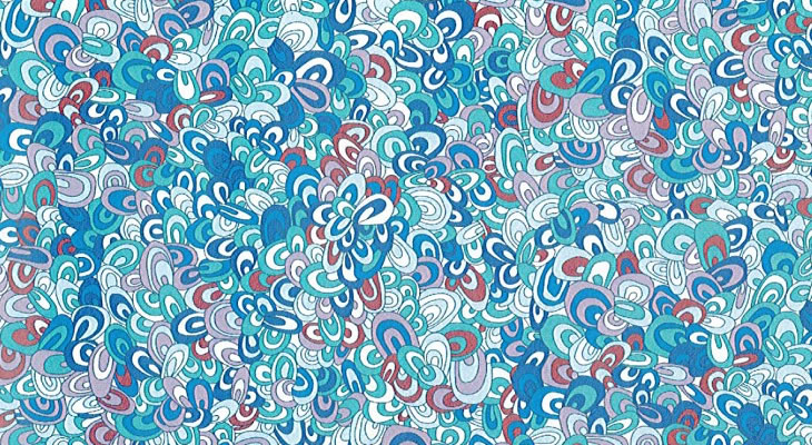 −パラダイスの縮小版− へメロカリス(デイリリー)の観察から生まれた、クロスハッチ(平行線模様)やはっきりとした線使から深みのあるトロピカル柄になっています。