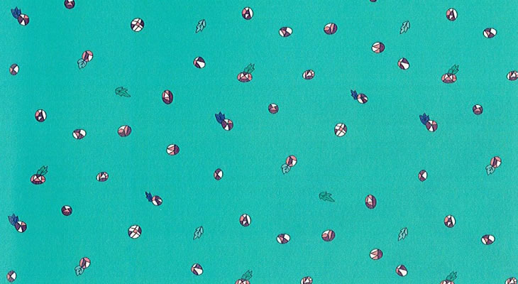 小さなつぼみや果実を、水玉模様からヒントを得て描いたデザインです。