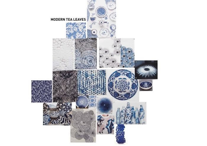 昔ながらの青陶器のデザインを、感覚的なイラスト・タッチを用いることで現代的に解釈を加えました。インクのような色合いが、さりげなくバティック(ジャワ更紗)を表現し、このテーマである日本的ルーツとも相まって、極東アジアの影響を受けたデザインとなりました。