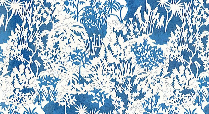 シンプルな草花のシルエットが浮かび上がる優美な庭園です。幾重にも重なる複雑なカットアウト(切り絵)が作り出す、形と影の魅惑的な紙の世界を追求します。