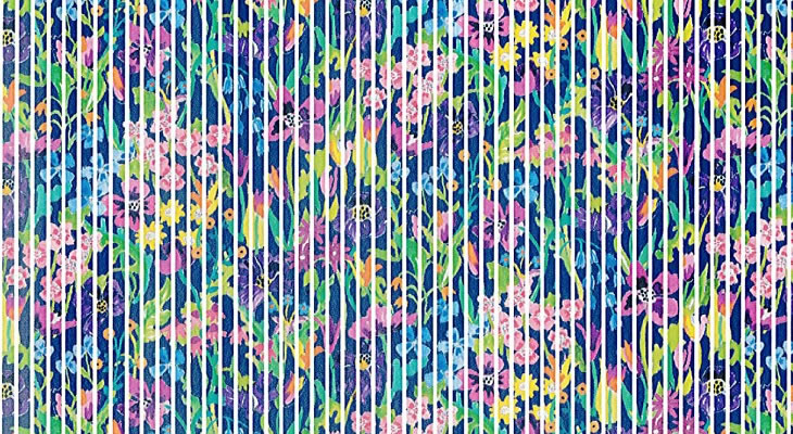繊細な花柄にモダンなシャープさを合わせ、ストライプが重ねられたデザインです。