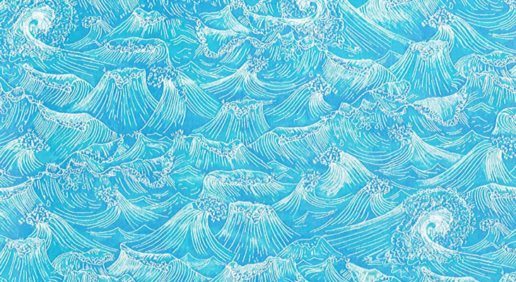 エネルギッシュでしっかりとした線遣いで、騒然しく風に吹かれる波の動きを捉えました。