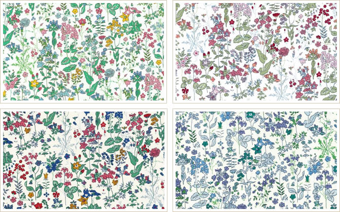 とても人気のあるこの小さなボタニカルプリントには、タンポポ、キンポウゲ、ワスレナグサ、ベルフラワーなどの野花が描かれています。メルシーでは今回特別に、こちらの記念生地を当店限定で販売いたします。