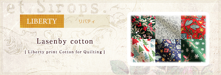 Lasenby Cotton(旧ライフスタイルファブリック)はロンドン発のキルト・パッチワーク向けの企画です。2012年10月に「ライフスタイルファブリック」の名前でファーストコレクションの発売が開始されました。キルト・パッチワーク用途のため、シーチングで生産されています。30スケアのシーチングで、タナローンに比べて厚手で透け感はありません。2017年より新たにLasenby Cottonの名前で展開されています。