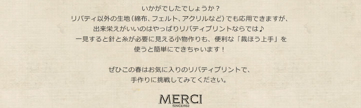 リバティ・ファブリックス、生地の通販メルシー > キャンペーン > ミシンなしでも大丈夫!縫わないリバティ特集