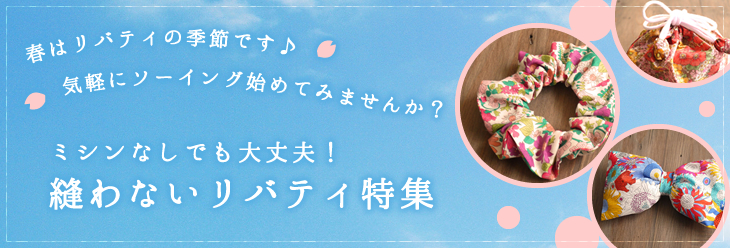 「ミシンなしでも作れるリバティ小物のご紹介」特集です。