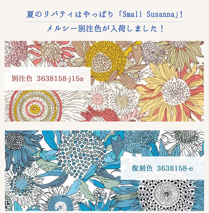 リバティ・ファブリックス、生地の通販メルシー > リバティ・ファブリックス メルシー別注・復刻柄 > メルシーオリジナル Small Susanna 1 件中 1-1 件表示 1 件中 1-1 件表示 |