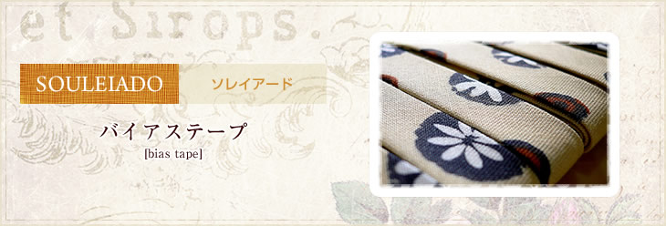 ソレイアードのバイアステープは小物のパイピングにぴったり。