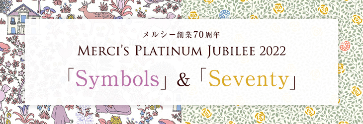リバティ・ファブリックス、生地の通販メルシー > リバティ・ファブリックス メルシー別注・復刻柄 > メルシー創業70周年 Merci's Platinum Jubilee 2022 > メルシー70周年記念 「Symbols」&「Seventy」