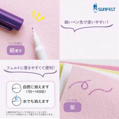 フェルトに書きやすくて便利に使えるフェルト用のチャコペンです。ペン先が細いのでにじみにくく、図案などがきれいに写せます。自然に消えて、水でも消せる!もちろんフェルト以外の布などにもご使用いただけます。