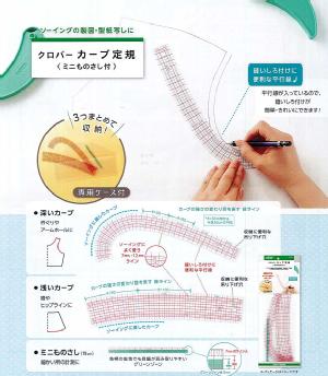 ソーイングでよく使う曲線に対応します。 型紙を写しとる時や製図の際に、2種類のカーブ定規とミニものさし(15cm)がセットになっています。縫いしろ付けに便利な平行線の目盛が入っているので、縫いしろ付けが簡単・きれいにできます。 深いカーブの定規は衿ぐりやアームホールに、浅いカーブの定規は裾やヒップラインに、ミニものさし(15cm)は細かい所の計測に便利。3つまとめて収納できる専用ケース付。製図や型紙の補正にも使えます。