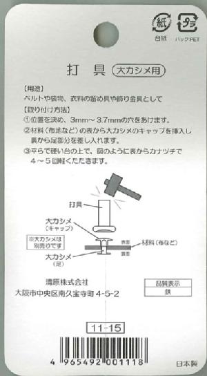 リバティ・ファブリックス、生地の通販メルシー > 手芸・ソーイング用品 > ロットボタン・ハトメ・カシメ > 大カシメ打具【頭径9mm用】SUN11-15