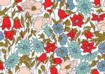 1986年にリバティのために手描きされたデザインで、1989年秋冬コレクションで発表されました。お祝いの花を咲かせる可憐な小枝と輝くローズヒップの実が、リッチなダークグランドに対してきらめく星のように浮かび上がります。