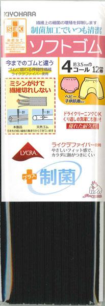 制菌ライクラ ソフトゴム(黒・4コール:約3.5mm巾/12m)【サンコッコー】