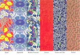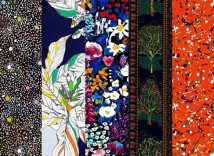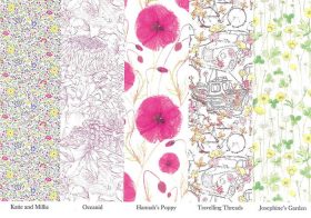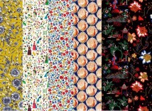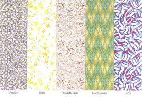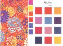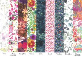 この植物をモチーフにしたミニ・コレクションに含まれるものは、すべてがデジタルプリントされたもので、メアリー・フェッデン(Mary Fedden), ユーゴ・グレンヴィル(Hugo Grenville)レイチェル・ペダー・スミス(Rachel Pedder-Smith)といった著名なアーティストたちによる特色のあるデザインと、リバティ・スタジオやフリーのデザイナーたちの手による柄が違和感なく共存しています。