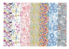 リバティ・アート・ワーク・ファブリックス・デザイン・スタジオが制作、推進したデザインに加え、ゲスト・アーティストやコラボレーターたちが制作及び厳選したデザインに、スタジオが手を加えた40点の限定版プリントの視覚的饗宴です。旗艦店であるロンドンのリバティ百貨店を隅々まで隈なく探求する中から生まれたこのコレクションは、テキスタイルを一堂に会したコレクションとしては最高のものになりました。オリジナルの作品は幾重もの時代を超え、多種多様な世界の情報を盛り込んでいます。