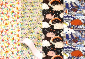 2016年春に発表された新作リバティプリント「The Garden of Dreams」は、ロバート・ルイス・スティーブンソンの詩集『子供の詩の園』をもとにした子供服向けの16点のオリジナル・デザイン・コレクションです。柄はそれぞれストーリーにカテゴライズされており、その中の第4話「Land of Dreams」の柄をご紹介いたします。