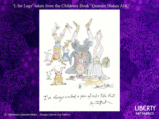リバティ社は、「クェンティン ブレイクの「ABC」の中にある”L for Legs”(レッグのL)をデザインのヒントとして使うことができ大変光栄でした。」と述べています。