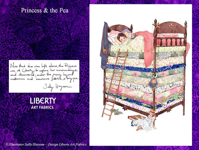 今回、リバティ社はサリーに「The Princess and the Pea(エンドウ豆の上に寝たお姫様)」のイラストを委託しました。