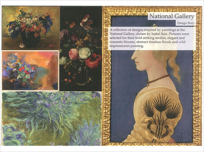 イザベル・セイズが選んだ一連のデザインは、大英博物館の絵画をヒントにして創られたものです。大胆で際立つファブリックのために選ばれたのは、エレガントでロマンティックに咲き誇る花、時空を肥えた抽象的な花、野生的な印象派の絵画などの柄でした。