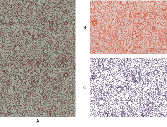 映画『時計仕掛けのオレンジ』をもとにした柄で、デザインしたフィル・キムはこの柄を「奇想天外の組み合わせによる幻想」と描写しています。