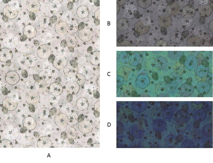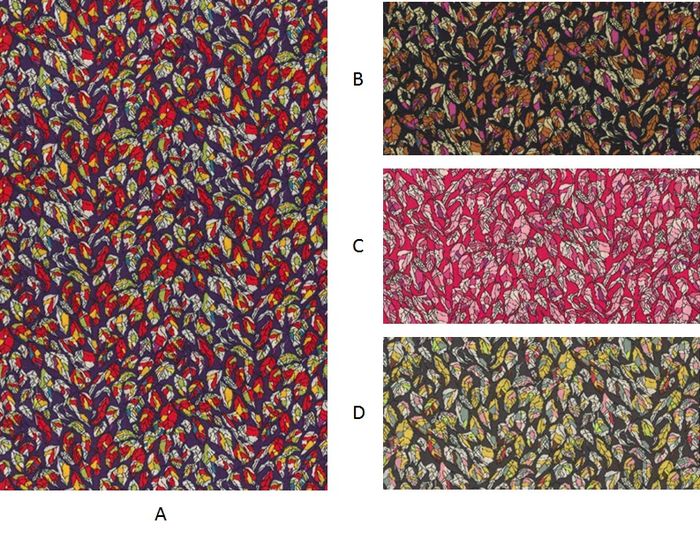 セントラル・セント・マーティンズの学生モーガン・レヴィのデザインにリバティのデザイン・スタジオで手を加えた柄です。染料になる自然の植物や野菜をテーマにクロイチゴの葉の柄が制作されました。レイチェル・デ・テームが2011年にCSMとの共同制作の審査員の一人をしていた時に選んだ柄です。