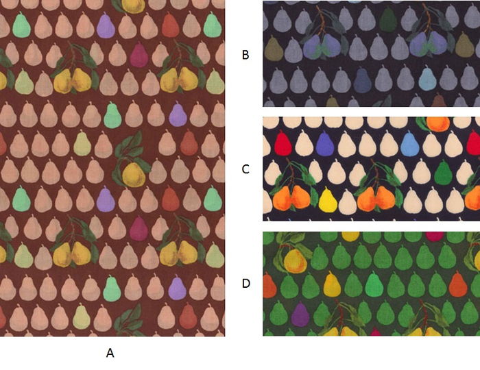 1990年初頭にジャック・プリンスによりインテリア向けに制作された一連のフルーツ・野菜柄の一部をもとにデザインされた洋なしのカンバセーショナル柄です。