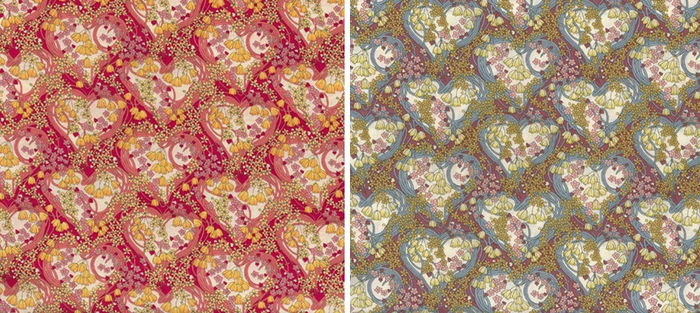 繊細な花々に巻き付くツタで構成された複雑なハートのプリントで、アビー・ガーデンで見つけたエキゾチックな樹木に思いを馳せて描かれました。