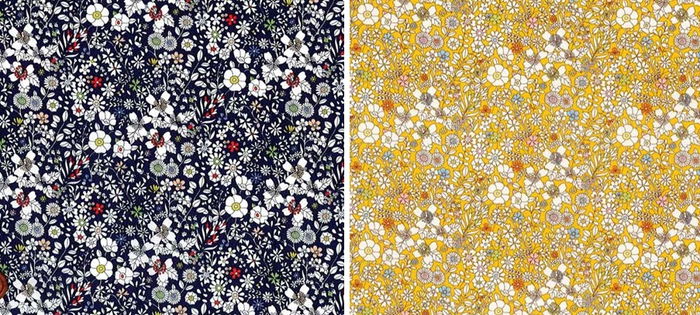トレスコ・アビー・ガーデンで黄金の光を放つ植物を一面に散らした柄で、その場でインクで描かれ、色づけされました。